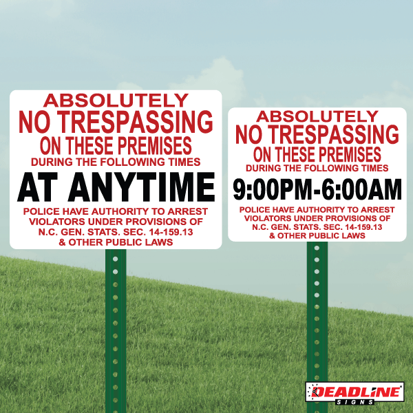 Display No Trespassing signs to deter unauthorized visitors from entering your property. Our metal signs are made of Aluminum Composite (ACM) and are durable and rust free, so it will stand up to weather elements.