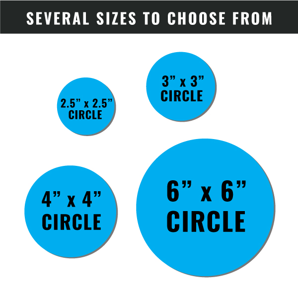 - Stickers are a great way for quick advertising. The 3M Scotchcal material we use allows for easy application to flat or simple curves. This intermediate, permanent vinyl film material offers a consistent and great image quality. In conclusion, try out a sticker and start to pass them along. Available in circle, square or rectangle shapes.