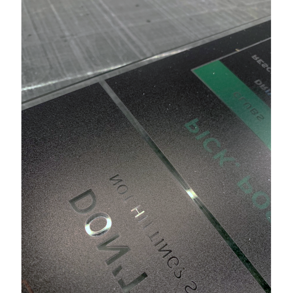 Clear acrylic signs can be printed on the front or back of the surface offering different advantages. Printing on the front side is our standard option which adds a matte finish appearance. We can aso print on the backside allowing for the graphic to show through the clear acrylic. This allows for the clear acrylic to have a glossy surface that can be easily cleaned. Bright lights can sometimes cause a glare on the second surface printing option.
