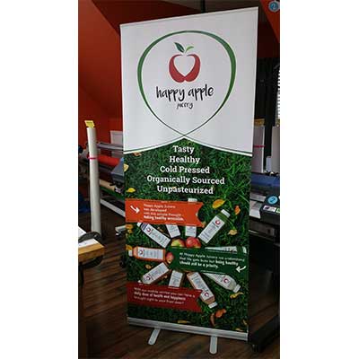 Retractable Banner prints are made of 15oz. vinyl banner that has a smooth side allowing for the banner to retract in stand easily. The banner is printed in full color and available single-sided only.