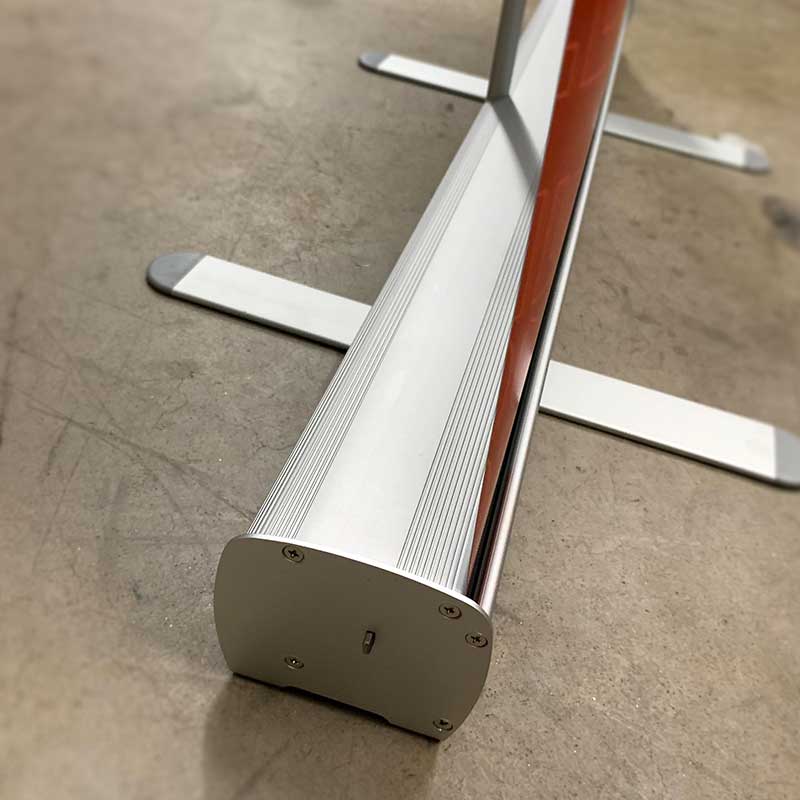 Retractable Stands made of aluminum body and advanced ABS plastic internal parts, Prints available in 15 oz. blockout vinyl banner.