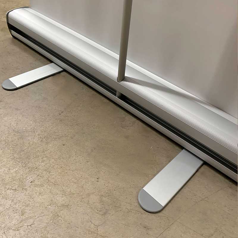 The Premium Floor Model style is a more durable option and made of heavy gauge aluminum. The base of our premium model has polished chrome end caps to add a professional touch. The stand also features a fixed-height 3-part pole for easy setup and break down. We recommend adding 6" of length to the bottom of the viewable graphic height in order to reinforce the attachment to the spring cassette. Padded carrying case included.
