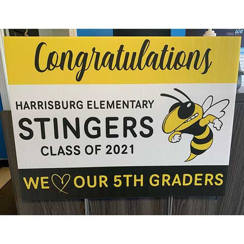 All of our yard signs are digitally printed directly to the material with UV ink. This method of printing offers great quality with no need for lamination or worrying about vinyl peel-up. Our printing process allows for full-color printing with a fast turnaround at no additional charge.